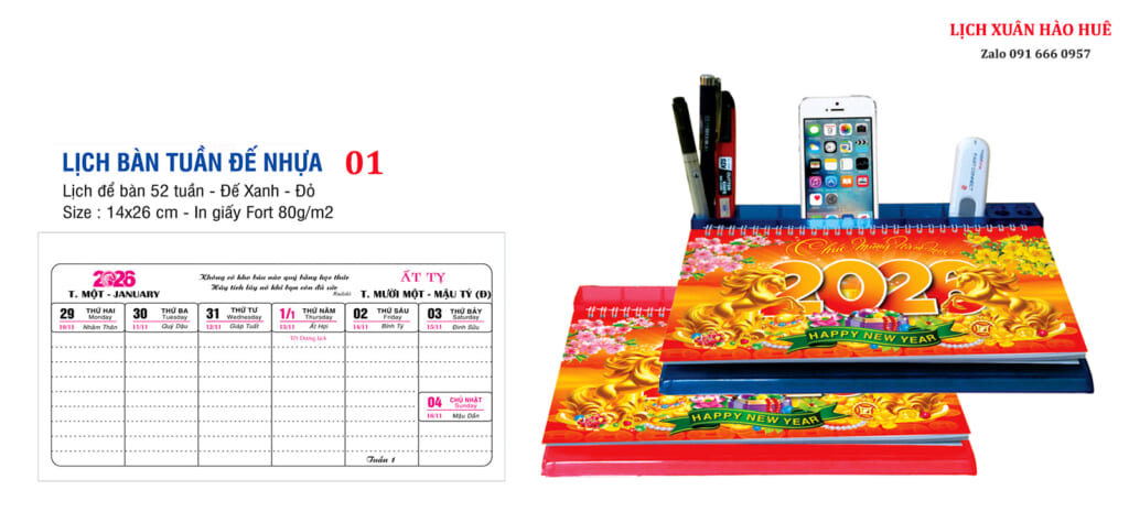 LỊCH ĐỂ BÀN ĐẾ NHỰA